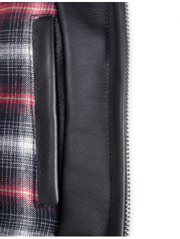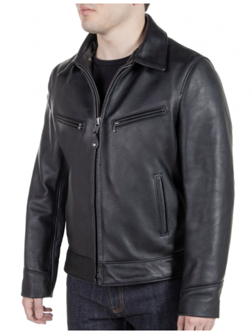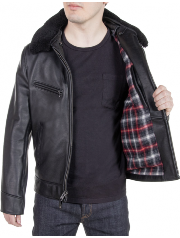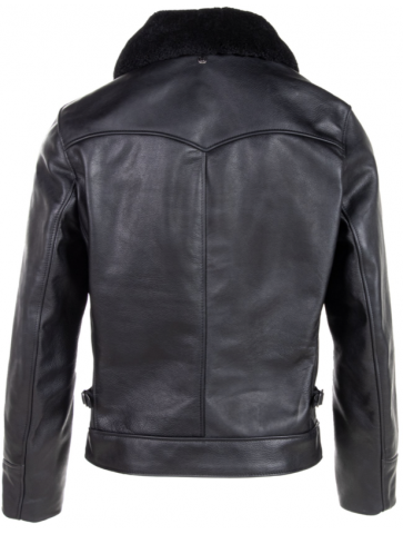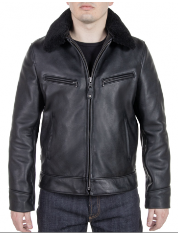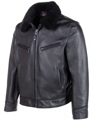 Men's waxy antique cowhide rancher jacket with detachable curly sheepskin collar