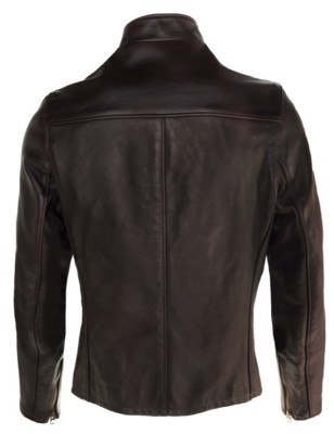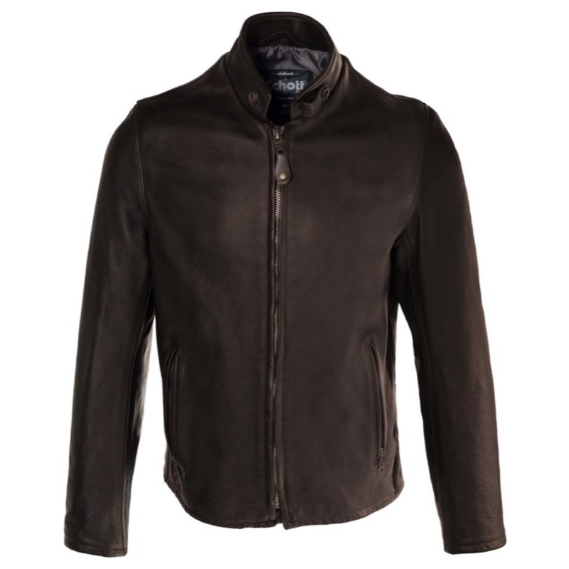 25” Lightweight vintaged broken-in cowhide fitted café racer with two lower zipper pockets and polyester twill lining. Available in black and brown. Union made in U.S.A.