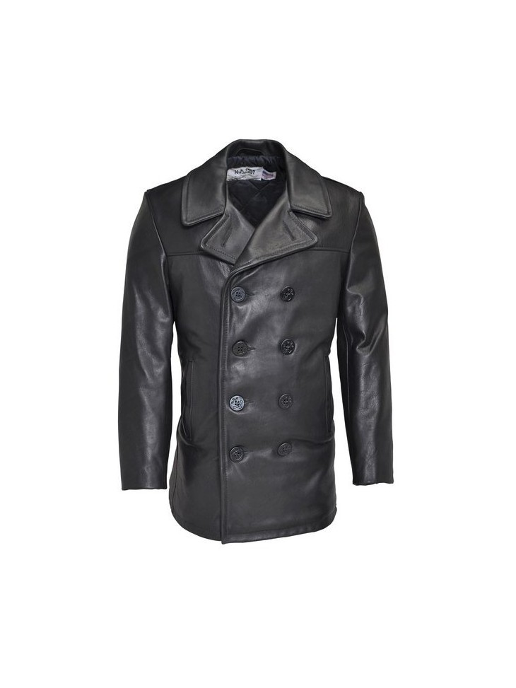 A twist on the classic Navy Peacoat, this version is made of naked leather featuring the same traditional details and fit