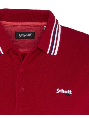SHORT SLEEVES POLO SHIRT WITH SCHOTT CHEST LOGO EMBROIDERY + FANCY STRIPED RIB
