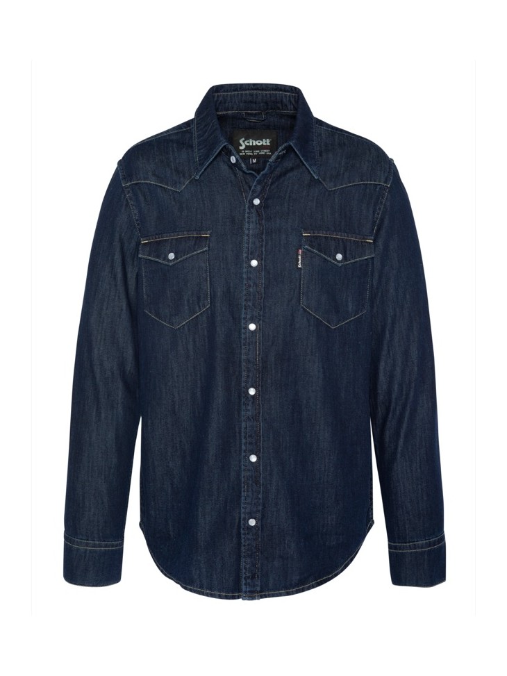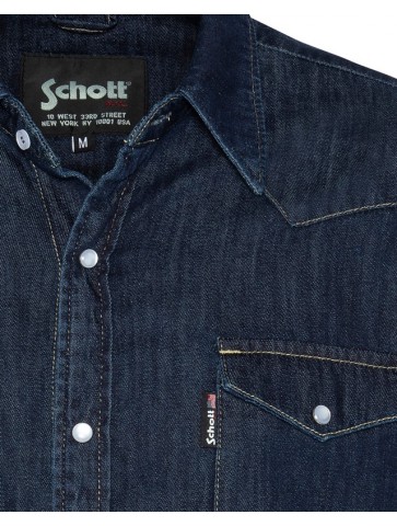 LONG SLEEVES LIGHT DENIM SHIRT WITH 2 POCKETS AND SCHOTT TAB ON LEFT CHEST POCKET