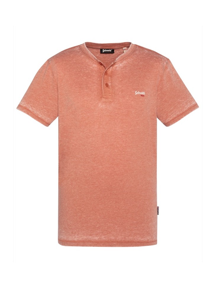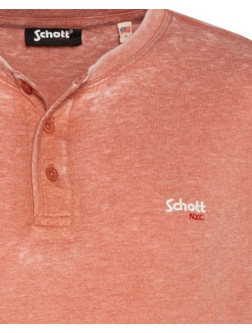 SHORT SLEEVES HENLEY T-SHIRT WITH SCHOTT CHEST LOGO "BURN OUT" FINISHING