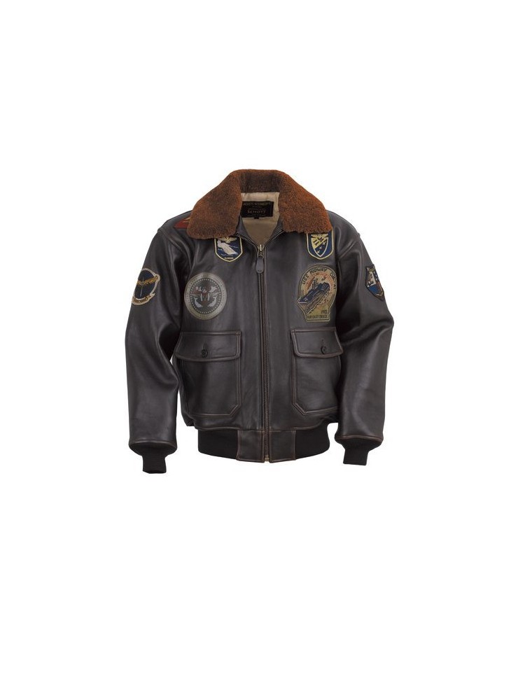The first aviators adopted leather as their material of choice because of it's durability, warmth, and good looks. In the spirit of American individualism, American soldiers preferred to decorate their leather bomber jackets with unit patches, nicknames and paintings. This heavily decorated 27" G1 flight jacket is made in thick supple antique lambskin, with detachable sheepskin fur collar and side entry pockets. The outside patches are authentic replicas of those worn by aviators. The detailed liner tells the story of the coveted "Wings of Gold", a rigorous two year flight school training program to which Naval Aviators are subjected. This jacket is imported. Available in black and antique.
