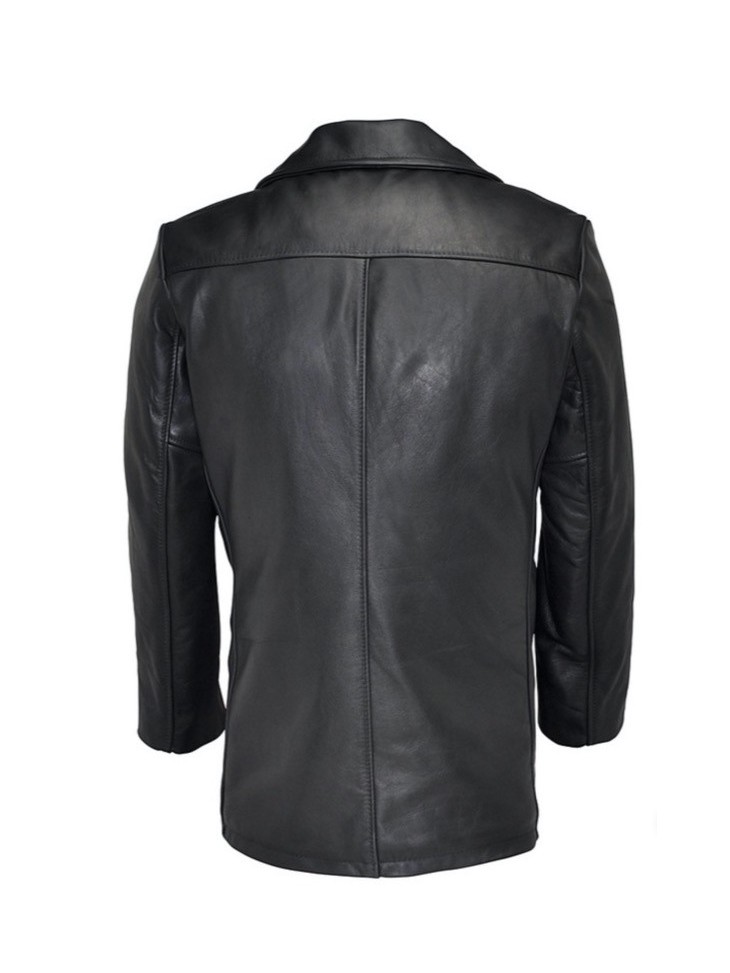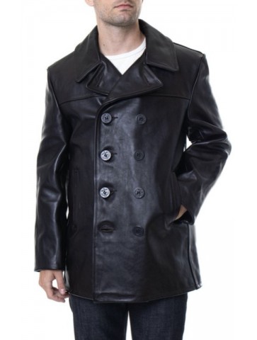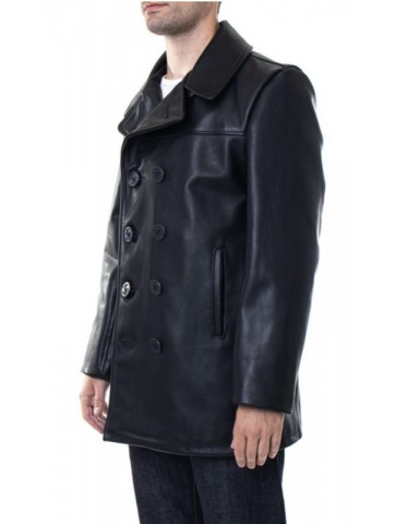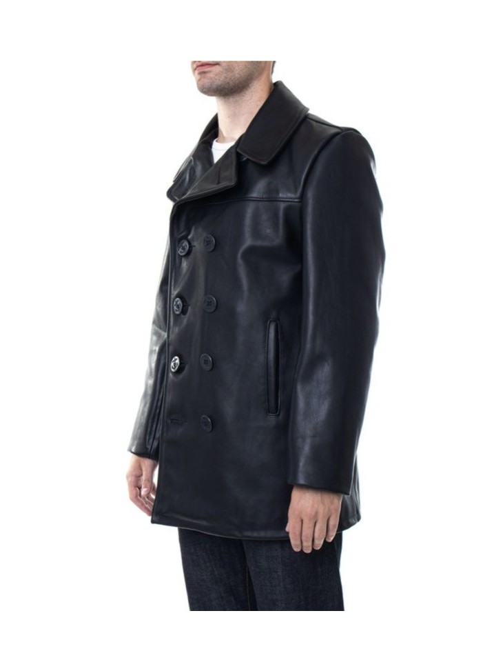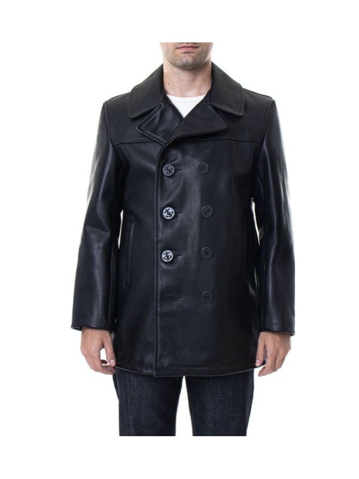 A twist on the classic Navy Peacoat, this version is made of naked leather featuring the same traditional details and fit